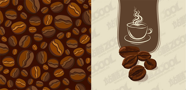 eps format, keyword: vector material, coffee, coffee beans background, hand-painted coffee mug