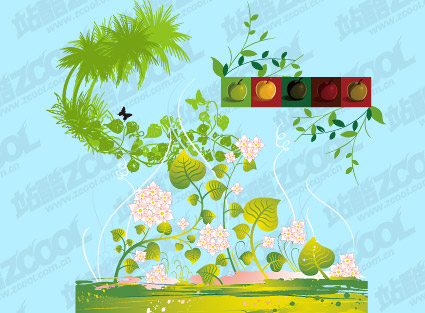 eps tormat??Keyword: vector material, vector flowers, vines, coconut trees, apples, leaves