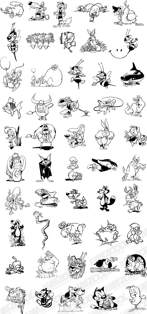 Location: Home > Vector > Vector Cartoon > black and white cartoon animals