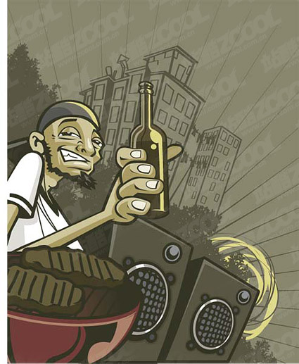 ai formats, including jpg preview, the crucial words: Vector music, people, bottles, buildings, night, speakers, vector material
